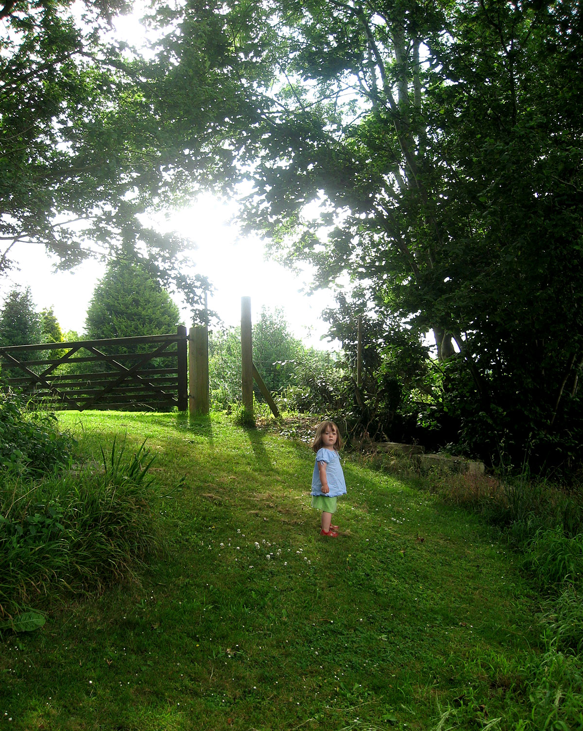 vanna Engelsk grind, fina flickan och de gröna kullarna utanför vårt Bed and breakfast. (Foto Kurbits)