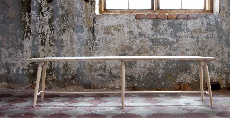 Nyboda sätter fart på alla sinnen: pratar (knarrar) snällt med en när man sitter på den, doftar linhö och möbelvax. Precis allt som vi glömt bort att möbler kan göra.