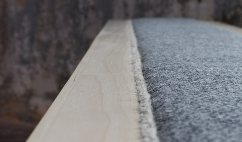 Nu presenterar Lars Gustavsson bänken Nyboda, en bänk i björk. Sittdynan är i ylletyg med linstoppning, den fästs i sistsen med linrep och nubb berättar han för mig. Precis som med liarna gör han bänken efter beställarens mått och önskemål. Fler modeller är på gång under 2010 lovar han.