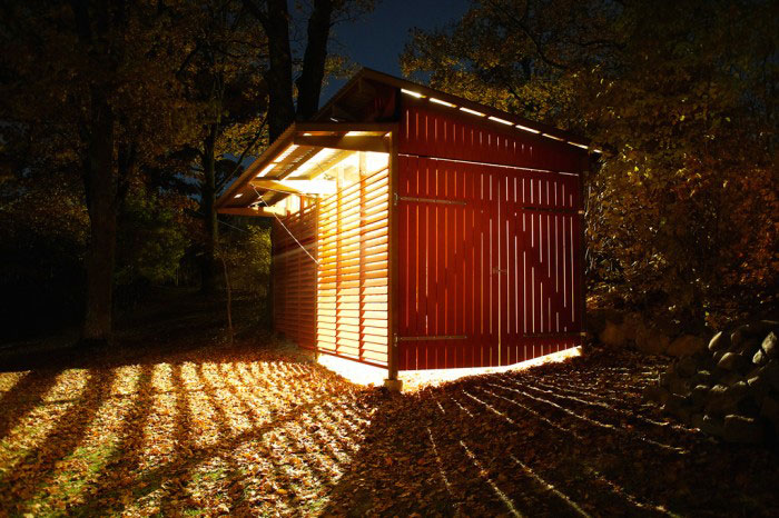 Tipset kommer från utmärkta BTC, där det går att läsa att boden är ritad av arkitekten Jonas Palmius 2009. Vedboden är fiffigt planerad så att det både går att förvara ved och sköta klyvning i ett. Läs mer om vedboden och se skisser och fler bilder här.