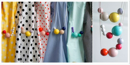 Jag hittade dessa fantastiska handmålade halsband häromdagen, åhej så fina. Och så fint fotograferade också, jag älskar det fina greppet med tygerna. Det är Kristina Klarin som gör trähalsbanden i olika storlekar och färger, trots det svenskklingande namnet har jag faktiskt inte lyckats lista ut om så är fallet.