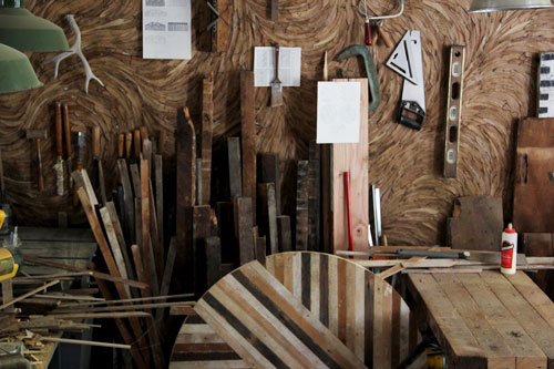 Främst jobbar hon med trä, se den fantastiska inredningen till en restaurang till exempel, därav namnet på företaget och sajten tänker jag mig – restaurangen ligger i Kalifornien och hon begav sig tvärsöver landet från Brooklyn på jakt efter material.