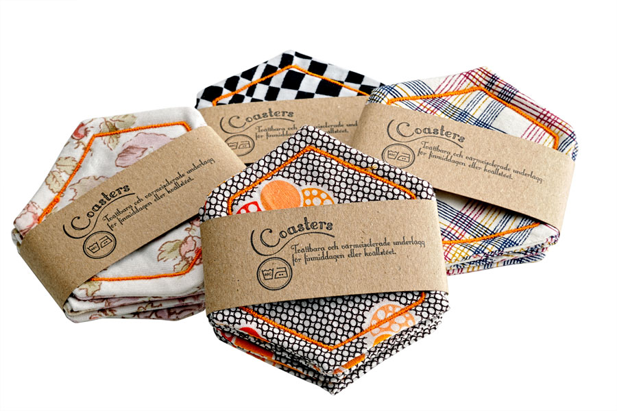 Och så finns dessa coasters. Allt i återbrukat material, gjort av rester som blev över. Det är ju just själva görandet som jag tycker är bra, du kan också göra själv därhemma! Att själv ta till vara och se vad som kan bli nytt av det gamla. Som Cecilia Wendin till exempel. Kolla in hennes sajt och butik.