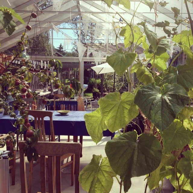 Målat tak i Trönö gamla kyrka en bit från Söderhamn. (Foto Kurbits)Det hus vi hyrde för andra året i rad. (Foto Kurbits)Sist men inte minst, gjorde vi en avstickare till mina hemtrakter – Nordingrå, Höga Kusten. (Foto Kurbits)Mina föräldrars inspirerande växthus och trädgård. (Foto Kurbits)Ja men alltså. Vilken sommar vi haft! Nu stundar hösten med en massa spännande aktiviteter, men när det är grått och kallt igen – då är det här en bra bild att ha på näthinnan. Höga Kusten och Hälsingland , två finfina platser i världen. (Foto Kurbits)