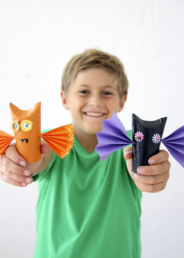Karin och Freja pysslar vid köksbordet därhemma, och det mesta de gör menar de att det finns en funktion kring. Det är också något jag tycker är sympatiskt med den här boken. Att det görs grejor som används – topshållare till toaletten, som Karin exemplifierar med, blomkrukor för vårens frösådd, lampor och dekorationer. Leksakerna fyller ju också en funktion, förstås, men inte alla vuxna tror jag tänker på att pysslet också kan flytta in i hemmet och ingå i inredningen. Gör man något tillsammans blir stoltheten därefter – från båda parter, det är iallafall min erfarenhet.