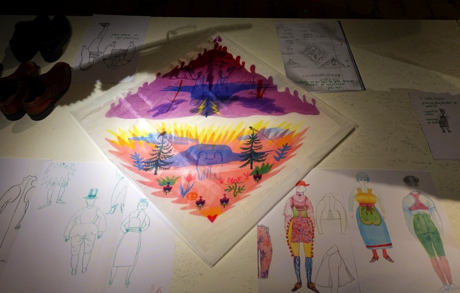 Det är vackert och mycket fint gjort också ur respekt för materialet. Gå och se hennes arbete nära – hennes detaljer är finurliga, träffsäkra och fyllda med en massa kunskap. Ida har dessutom fyllt på med kunskap från andra kring dräkterna – i utställningen finns en mängd av hennes egna skisser, det är roligt att följa hennes arbete från skiss till färdigt resultat.