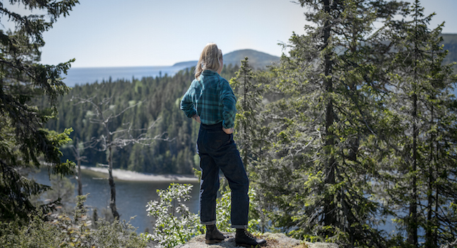 För en tid sedan såg kollektionen High Coast dagens ljus, här är det två riktigt goda ting som förenas vill jag lova; Höga Kustens blånande berg och dramatiska dalar i kombination med en sprillans ny kollektion textil, jo jag tackar! Det är handvävaren Miriam Parkman som samarbetar med Indigofera Jeans och tillsammans har de tagit fram två filtar och fem plagg i work- och westernstil. Allt fotograferat i den bästa av världsarvsmiljöer förstås.