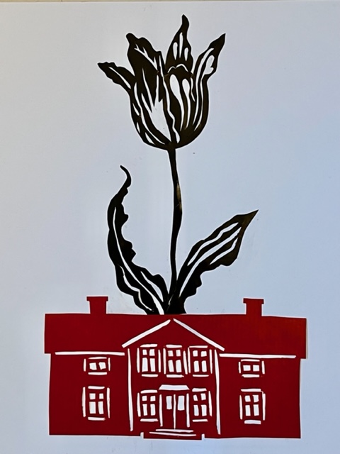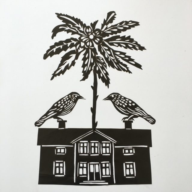 I trädet bakom huset, pappersklipp av Karin Ferner, visas just nu på Studio Barbara Bunke i Stockholm.