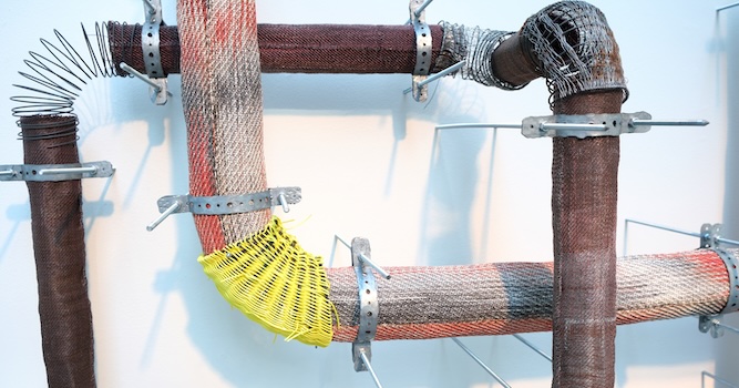 Vi är vana att se rör i solida material som PVC och metall, men här består de till synes rostiga och plastiga rören i själva verket av känsligt utförd väv. Lynn Stenvalls rör börjar och slutar dessutom i tomma intet, och är inte i traditionell mening funktionella. Föremål som ofta ses som fula och som ett nödvändigt ont blir tack vare det oväntade valet av material och tekniker samt genom handens arbete någonting oerhört intressant och vackert.