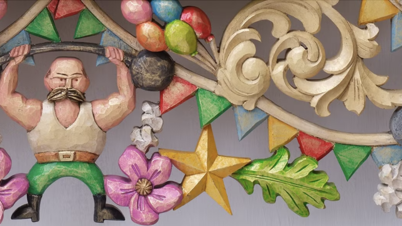 Det är också roligt att färgen är så viktig för Carstens uttryck, jag intervjuade honom för ett par år sedan och då sa han två saker jag minns – att han alltid målar sina motiv, eftersom han tycker att träet i sig är lite tråkigt – hans figurer runt ramarna syns bättre och färgen blir ett sätt att väcka dem till liv, jag kan förstå hur han menar. Han berättade också att han som träbildhuggare behöver kunna arbeta med båda sina händer, och att han genom åren övat upp lika mycket skicklighet i vänster som höger hand. Jojo!